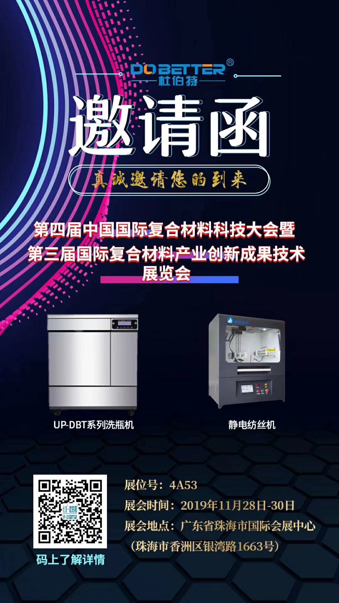 2019年11月28-30日,第四屆中國國際復合材料科技大會暨第三屆國際復合材料產業創新成果技術展覽會(CCCM-4)將在珠海如期開展。屆時,杜伯特將攜實驗室洗瓶機等創新產品精彩亮相,為您呈現高水準、國際化的產品與技術。(展位號:4A53)