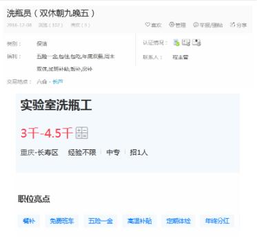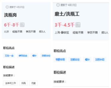 為解決招洗瓶工難這一問題,科研機構不得不提高洗瓶工薪酬待遇。綜合國內各大招聘平臺的數據可見,洗瓶阿姨的“身價”可不低。包吃、包住、周末雙休、加班補助、高溫補貼、定期體檢、免費班車、飯補房補、年底雙薪、年終分紅。。。。。。網友:我也要應聘!