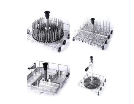 實(shí)驗室器皿需要根據(jù)不同結(jié)構(gòu)(燒杯、錐形瓶、容量瓶、樣品瓶、采樣瓶、試管、移液管、色譜進(jìn)樣小瓶、頂空進(jìn)樣瓶等)尺寸和容量(2ml、10ml、100ml、......)等以及需要清洗的器皿數(shù)量進(jìn)行分類。根據(jù)這些信息可以選擇我們家族合適的實(shí)驗室全自動洗瓶機(jī)及定制清洗籃架來滿足需要。